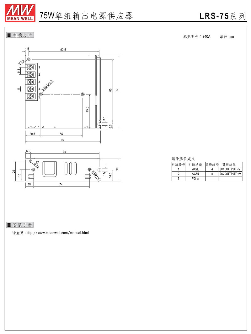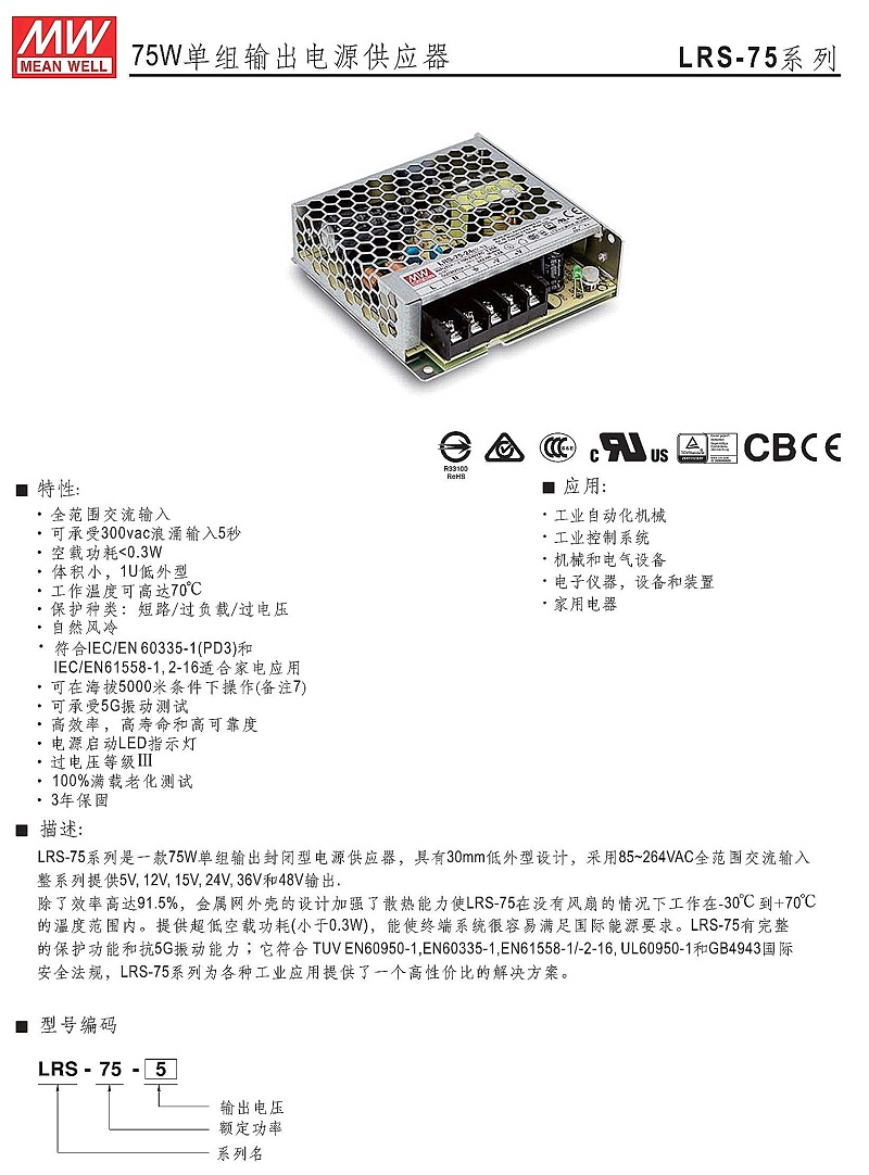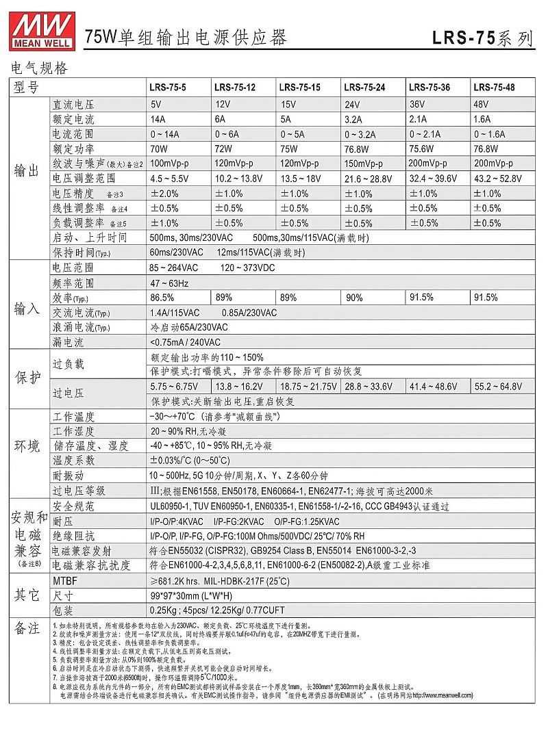 ******明緯電源LRS-75-36 75W直流36V開關電源 三年質保