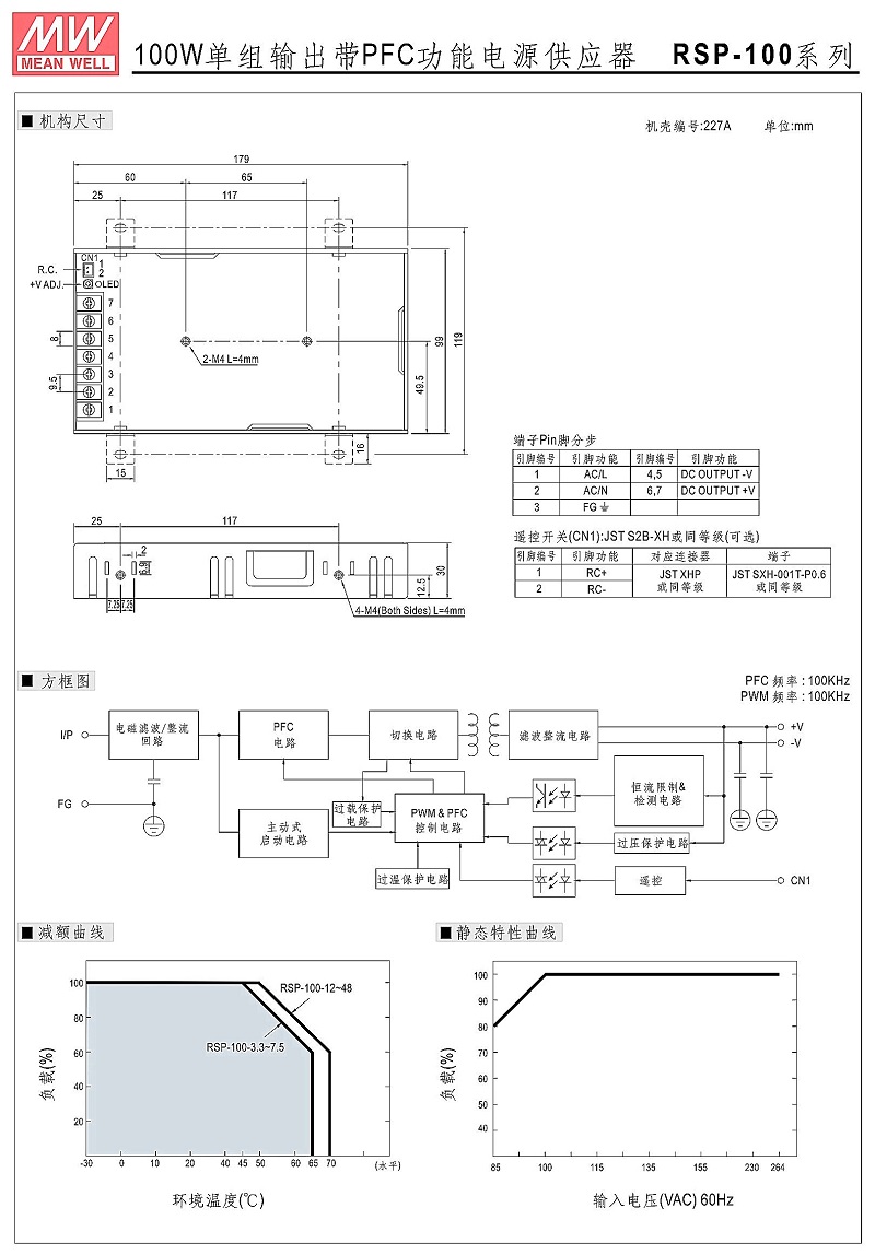 明緯******PFC電源 RSP-100-7.5 直流7.5V13.5A開關電源 3年質保